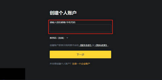2、OKX已全面开放大陆用户进行手机号注册,输入邮箱/手机号、点击下一步即可