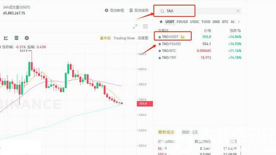 8、搜索币种简称【TAO】,选择【TAO/USDT】交易对