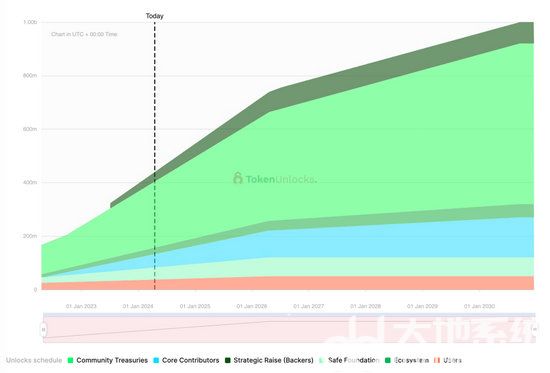 生态贡献者:分配总供应量的5%,共5,000万枚代币,其中一半立即空投分发,另一半在四年内线性解锁。