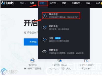 2、在首页点击交易-现货交易进入交易页面。