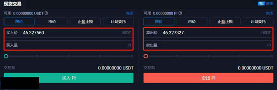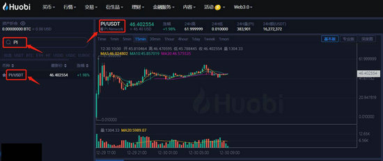 3、在左侧搜索栏输入币种简称PI,选择PI/USDT交易对。