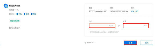 7、在弹窗中输入币种数量,点击下单即可。
