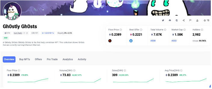 这可能也增加了持有 Gh 0 stly Gh 0 sts 以获取空投代币的预期,或者也表明了市场在博取持有全链概念 NFT 以获取更多营销活动机会的可能。