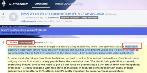 去年 7 月,Vitalik 在以太坊论坛中就提到,未来将是多链的,但不会是跨链的,因为跨越多个“主权区域”的桥存在基本的安全限制。