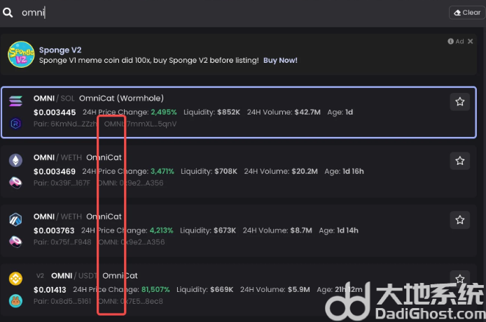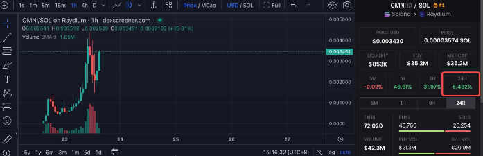 如果你在 Dexscreener 等链上交易工具上搜索 OMNI,就会发现一个奇特的现象: