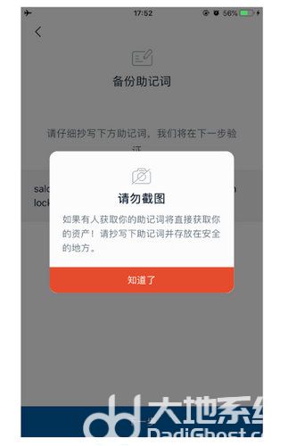 备份身份,按照顺序抄写助记词。