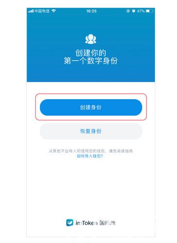 打开 imToken,点击「创建身份」,创建新的数字身份。