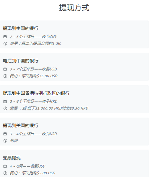 2. 提现到国内以人民币进账,收取1.2%的费用,建议3000美金以下可以使用这种。