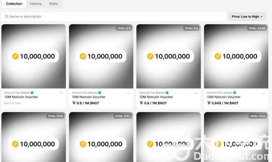 3月初,Notcoin推出了一项功能,允许精英玩家将大量游戏内货币转换为NFT代金券,这些代金券可以在其代币正式发行之前进行交易。玩家可以选择用1000万或1亿游戏币换取优惠券NFT。当前该NFT已上线TON 生态 NFT 交易平台 Getgems进行提前交易和定价,当代币正式在链上发行后,NFT可兑换为代币。