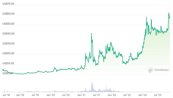 在6年前的2017年6月底,币安率先发布平台币BNB,总量2亿枚。其中1亿枚通过ICO发行,投资者可以通过BTC和ETH兑换BNB。当时BTC才2000美元,ETH只有200美元,1亿枚BNB融资了1500万美元。这是一次非常成功的平台币发行和融资。