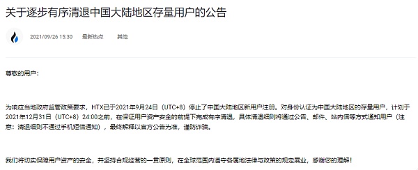 火币在2021年9月放了一个断臂求生的大招。