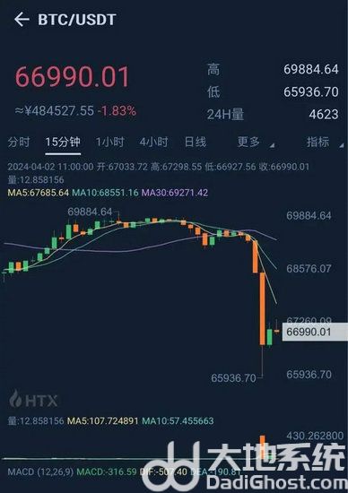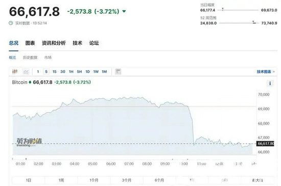 截至发稿,比特币报66617.8美元/枚,跌幅3.72%。