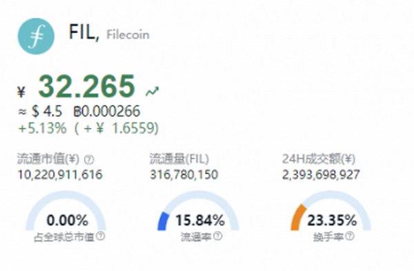 截止2022年12月8日17:00时,fil币最新价格为$4.37美元,换算¥30.45人民币;