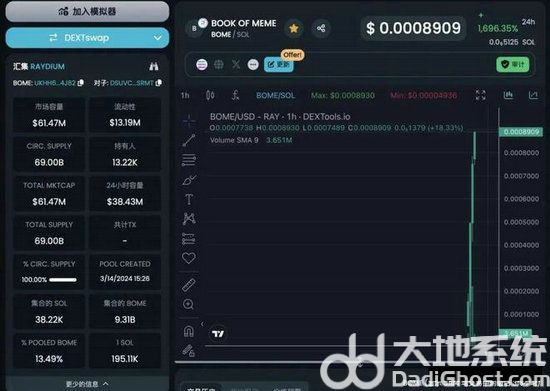 BOME币值得长期持有吗?BOME币是一款全新的MEME币,按照目前的涨势来说是值得长期持有的,近期BOME币暴涨,并且市值已经冲到了6147万美金,持有地址超过1.3万个,接下来小编就带来详细的BOME币实时行情分享以及分析,希望对你们有帮助。