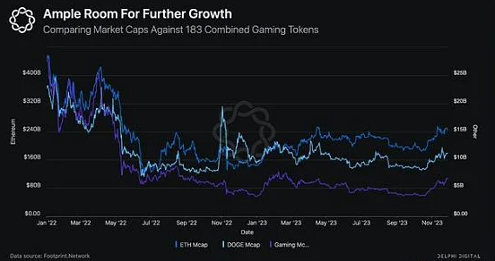 1:2023年全年,183个游戏项目的总市值相对稳定在 40 亿至 70亿 美元之间,比2022年的历史高点低 86%。仍有巨大的增长潜力。