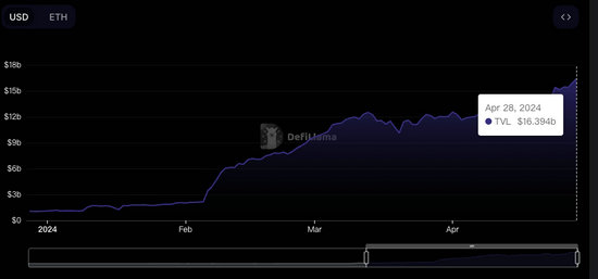 如今,随着Restaking赛道兴起,以太坊再质押协议EigenLayer TVL更是在今日突破160亿美元,市场上大量资金被锁定在这种低频、高效率的投资活动中,导致整体的交易需求有所下降,且在一段长时间内不需要进行额外操作。据数据显示,目前1.22亿颗ETH的总供应量中,约有26%是在Beacon(信标)链上托管的,因此,综合上述成为了交易费用下降的另一大因素。