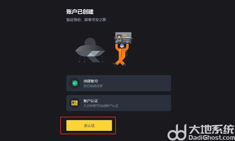 4、账号创建后,点击【去认证】