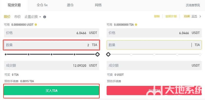 8、填写买入数量,点击【买入TIA】即可完成TIA币购买交易