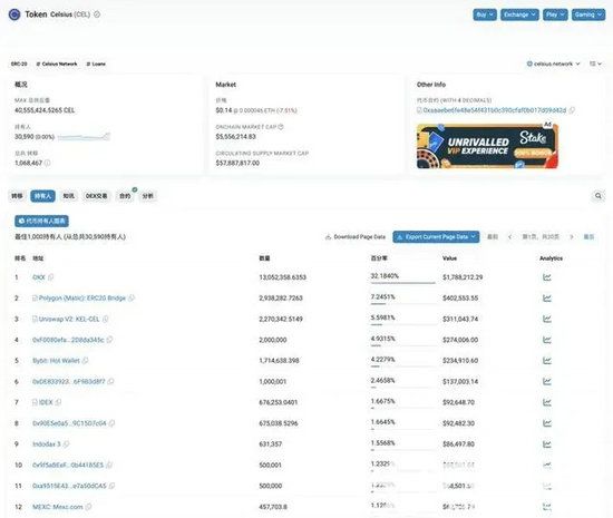 根据CoinGecko的数据,这次交易后,$CEL的剩余供应量减少至约4,060万个。此外,根据arkham提供的数据,这次代币发送交易是来自Celsius控制的钱包,确认了这个发送地址确实属于Celsius。