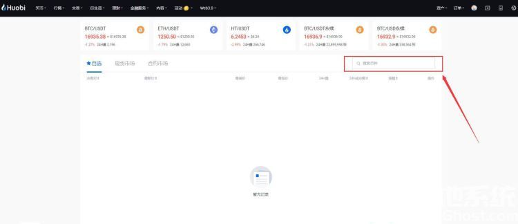 第一步:登陆huobi官网,没有账号的投资者可以点此注册新账号,进入行情页面
