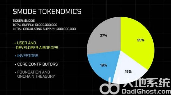 此外,MODE 的总供应量为100 亿枚,其中初始流通供应量将为13 亿枚,流通市占率部分来自第一季空投奖励,部分来自基金会和链上财库。