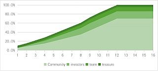 分配:社区 65%(用户40% 建设者和合作伙伴25%),私人销售 21.25%,团队 8.75%,储备 5%