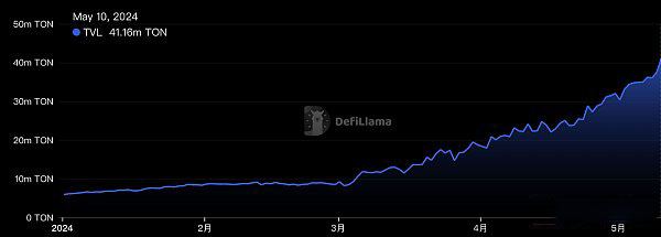 NOT上线的这几天,TON网络的TVL)显著上升, 截至 5 月 10 日,TVL 为 4116 万TON,5 月份增长约了35%,2024 年迄今增长了7倍,凸显了对TON 强劲需求的同时,也佐证了NOT对TON生态的拉动效果。