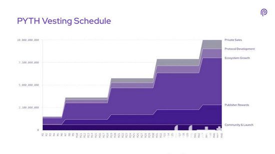 这部分 PYTH 代币是用于初始启动阶段以及相关社区活动和计划的分配,目前所有 6 亿 PYTH 代币已在发布首日完全解锁。