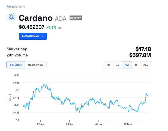 最终,在每日交易量增长后,卡尔达诺的价格上涨了 5% 以上,达到 0.48 美元。去年ADA增长了27.35%,市值超过170亿美元。