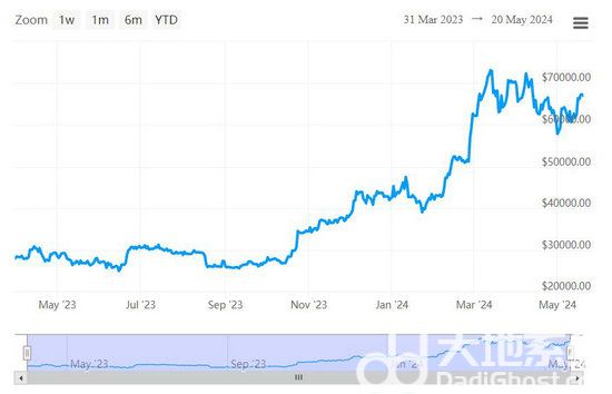 比特币BTC的历史最高价是在 2024 年 3 月 14 日,交易价格为每比特币 73,835.57 美元。 2023年6月15日,该加密货币过去一年的盘中最低价格为24,797.17美元。原始加密货币同比上涨149.65%。