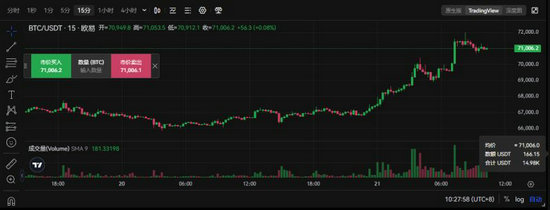 比特币BTC(即 1 BTC)的交易价格突破71,002.77 美元。原始加密货币在过去一年中达到的最高盘中价格为 2024 年 5 月 21 日上午 6:25 为 73,750.07 美元。