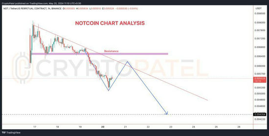 加密货币分析师“Crypto Patel”对 Notcoin 未来的价格走势持悲观前景。Patel表示:“根据图表分析,我们可以看到小幅上涨至 0.0060-0.0065 美元,然后下一波跌至 0.0040 美元。”