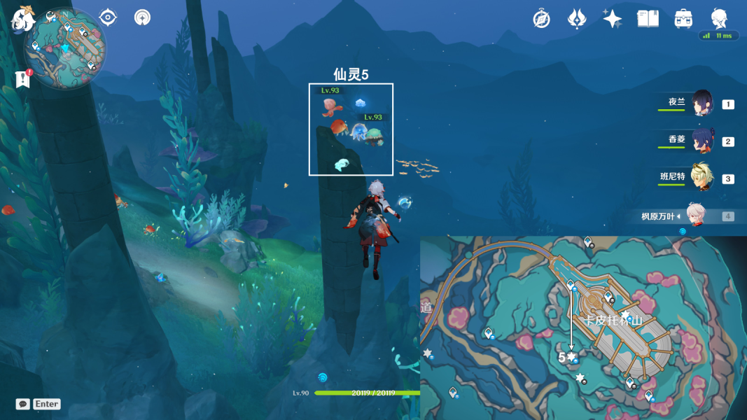 1、按T前往斯库拉,游至地图东北方向的仙灵6号(洞穴入口);
