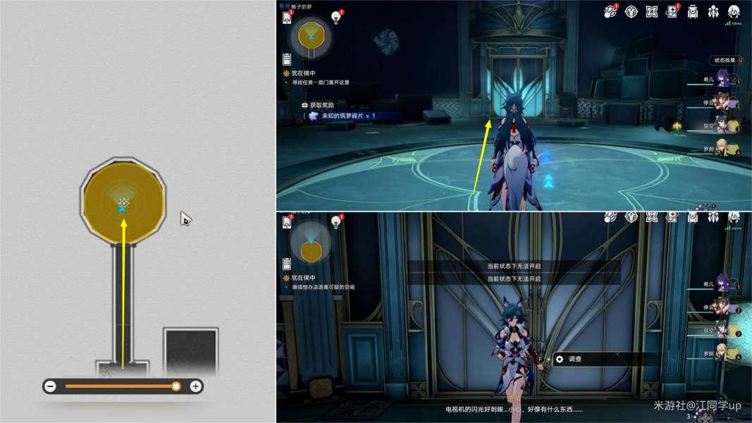 (11)离开2号房间后,前往下图位置【调查】,然后解谜。你需要先去左右房间找到2个碎片。